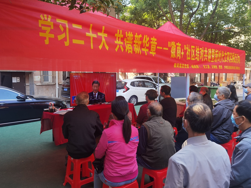 在商之都的各大商場(chǎng)內(nèi),電子屏循環(huán)播放著“學(xué)習(xí)二十大,永遠(yuǎn)跟黨走,奮進(jìn)新征程”“喜迎二十大,奮進(jìn)新征程“宣傳字幕。合肥中心廣場(chǎng)組織黨員、賣場(chǎng)主管以上人員、國(guó)生電器及紅府超市員工代表以集體唱紅歌、升國(guó)旗的形式慶祝黨的二十大勝利召開。總部黨支部、國(guó)生電器黨支部、合肥中心廣場(chǎng)黨支部黨員走進(jìn)三牌樓社區(qū),與社區(qū)黨委聯(lián)合開展了“學(xué)習(xí)二十大 共譜新華章——‘徽商+’社區(qū)結(jié)對(duì)共建暨新時(shí)代文明實(shí)踐活動(dòng)”,和社區(qū)里的退休黨員群眾一起收看了二十大開幕盛況,并上門為省經(jīng)信委機(jī)械小區(qū)居民清洗空調(diào)。