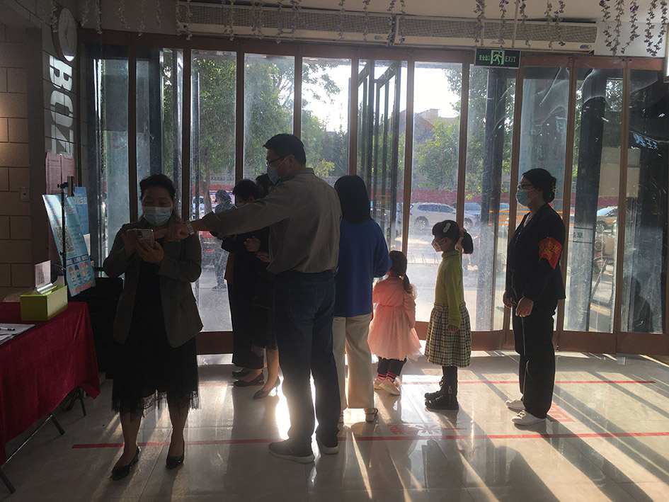 “五一”當(dāng)天,商場(chǎng)客流增多,服務(wù)保障部門堅(jiān)守“一小時(shí)輪崗”制度,同安保人員對(duì)進(jìn)店顧客進(jìn)行測(cè)溫、驗(yàn)雙碼、提醒規(guī)范佩戴口罩工作。