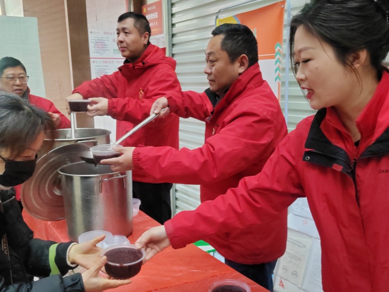 活動(dòng)當(dāng)天,霍邱商廈“心服務(wù)”小分隊(duì)早早地來(lái)到一樓,抬粥、打粥、發(fā)粥、維持秩序,黨員們分工協(xié)作,忙碌而有序地發(fā)放香濃可口的臘八粥。精選的紅豆、糯米、紅棗、桂圓、蓮子等多種食材,經(jīng)過(guò)精心熬煮,一碗碗熱騰騰的臘八粥散發(fā)出誘人的香氣,寓意著新的一年里五谷豐登、吉祥如意,傳遞到員工手中。