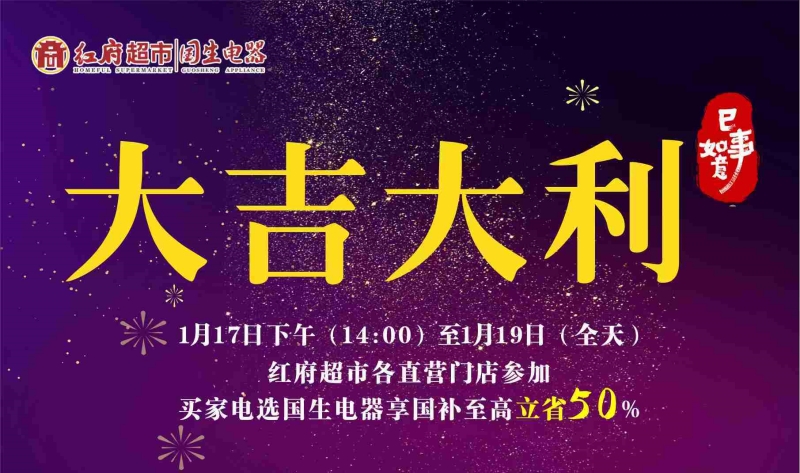 每年的小年前后,紅府超市總是以一種隆重的方式回饋市民朋友,紅府超市“大吉大利”以超大大大大的優(yōu)惠福利呈現(xiàn)。春節(jié)的腳步漸漸近了,紅府超市一年一度最大活動即將到來,祝愿大家“大吉大利”,享福利趁此活動薅凈福利。