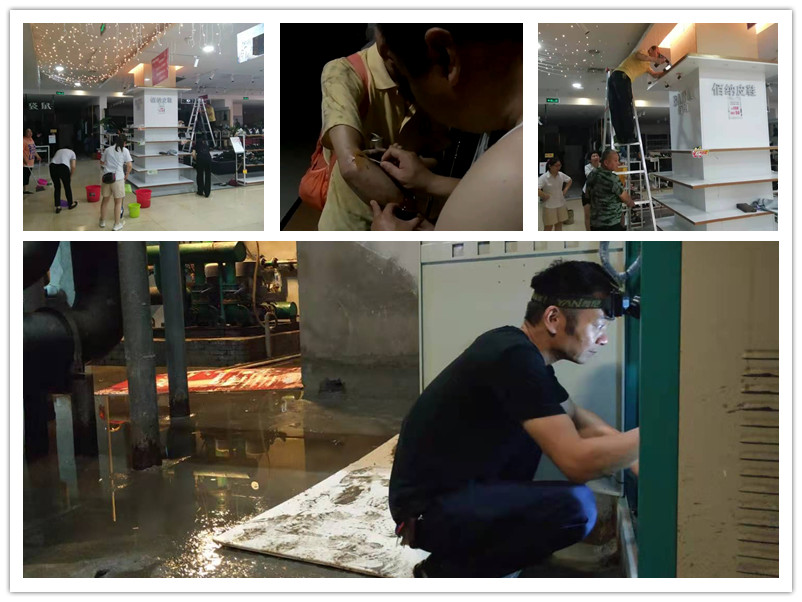 16日中午至夜間,暴雨傾注,淮南商廈一樓、二樓相繼出現(xiàn)漏水點,需要及時處置,轉(zhuǎn)移商品。這是一場與時間的賽跑。員工們不怕臟、不怕累、搬貨品、堵漏洞、清積水,員工陶友君在搶險過程中手臂劃傷仍然繼續(xù)工作。在大家共同努力下,23:00左右排除了安全隱患,確保商廈安全經(jīng)營。(文/圖 賈賢春)