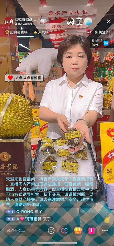 近日,徽商紅府超市黨支部書記、總經(jīng)理李金梅走進(jìn)抖音直播間開啟直播帶貨模式,為線上、線下客戶朋友們帶來消暑季放“價(jià)”福利。