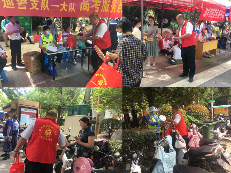 6月7日,2021年高考的第一天,志愿者們早晨7:30前就來到了合肥市九中考點門口,準備發(fā)放礦泉水、小扇子等物品,全力投入到“關(guān)愛學子,助力高考”公益活動中。