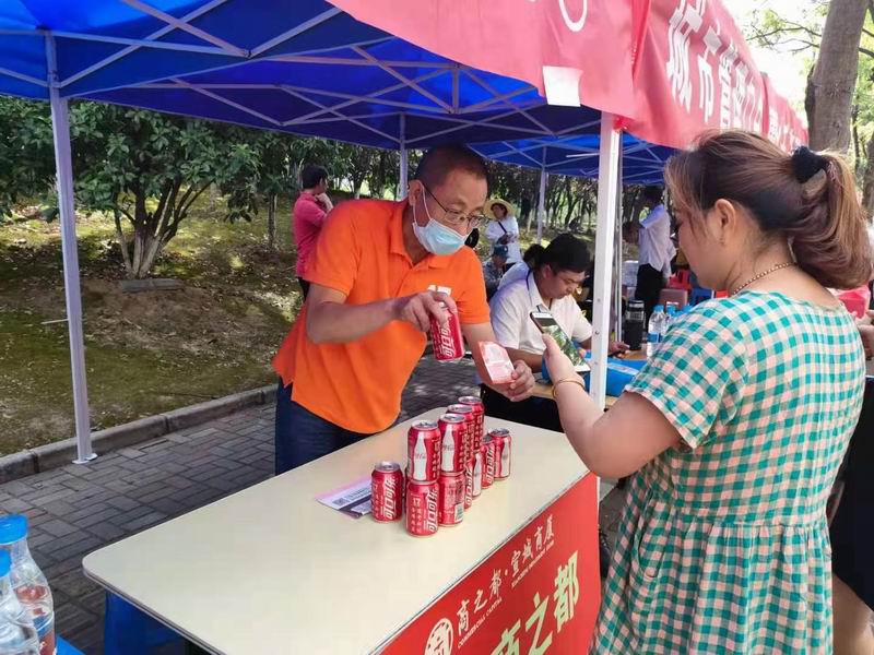 一大早,服務隊成員就緊張地在考點旁搭起了商之都宣城商廈高考服務站,準備了可樂、仁丹、風油精等防暑物品,為考生和送考的家長送去一份清涼,助力莘莘學子赴考,受到了考生和家長們的好評,同時為擴大商之都影響力,在站點處還放置了宣城商廈二維碼,讓過路行人關(guān)注。