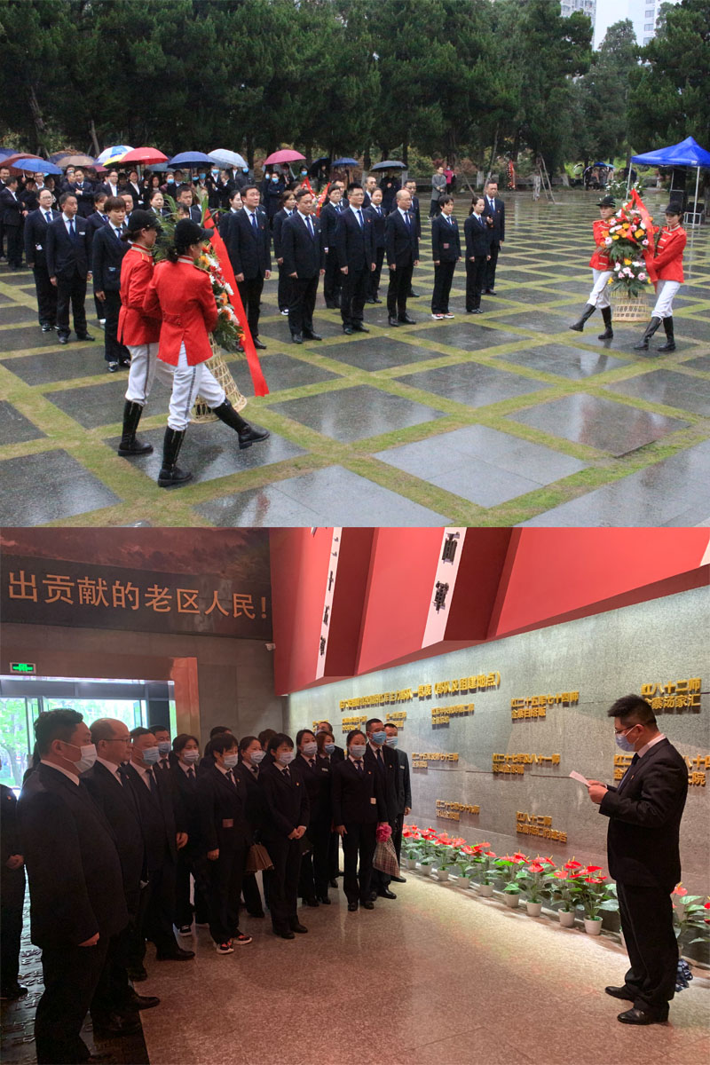 細(xì)雨紛紛,在莊嚴(yán)肅穆的烈士紀(jì)念碑前,全體參加人員整齊列隊,莊嚴(yán)肅立,向紀(jì)念碑敬獻(xiàn)花籃,并向革命烈士默哀鞠躬,深切緬懷革命先烈,隨后大家緩步繞行,瞻仰烈士紀(jì)念碑。