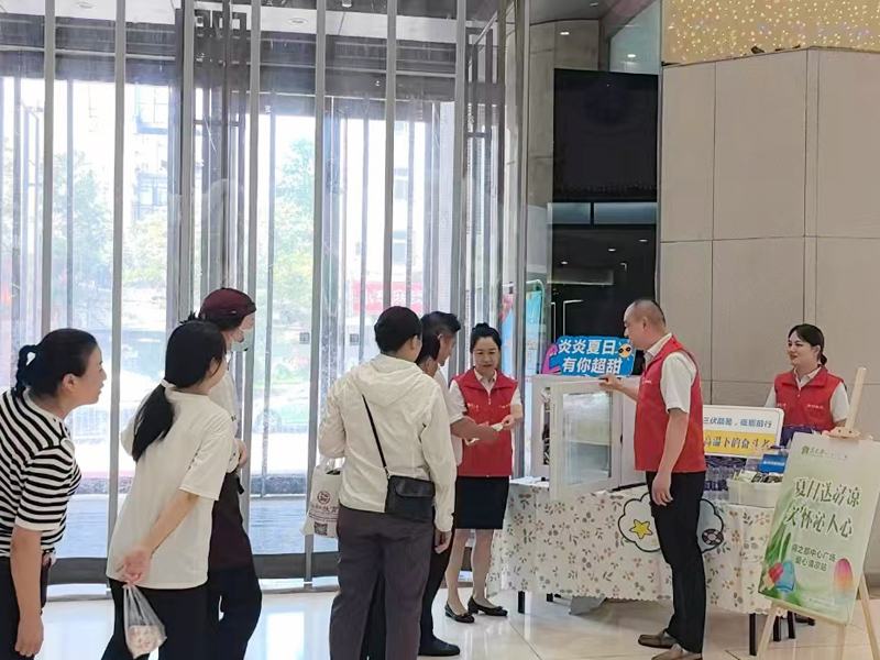 活動現(xiàn)場,志愿者們早早地忙碌起來,精心準備了防暑藥品、冷飲、礦泉水等清涼物品。這些飽含著公司關(guān)心關(guān)愛的物品被逐一分發(fā)到每一位員工的手中。進店的顧客也紛紛加入其中,領(lǐng)取清涼物品。大家臉上洋溢著幸福的笑容,內(nèi)心的喜悅溢于言表,紛紛表示感受到了中心廣場的溫暖。