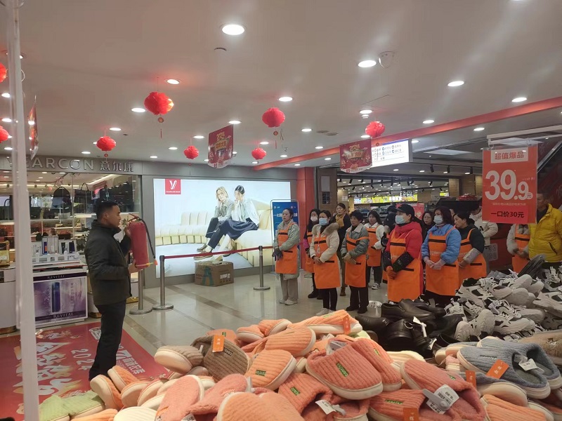 為做好新的一年消防安全生產(chǎn)工作,將提高員工安全生產(chǎn)能力落到實處,幫助合作伙伴進(jìn)一步提高安全意識,共同維護(hù)商場經(jīng)營安全。2月1日、2日宣城商廈后勤保障部主動組織新入駐商戶“和誠衣庫”全體員工結(jié)合現(xiàn)場實際環(huán)境,開展消防知識安全培訓(xùn)。