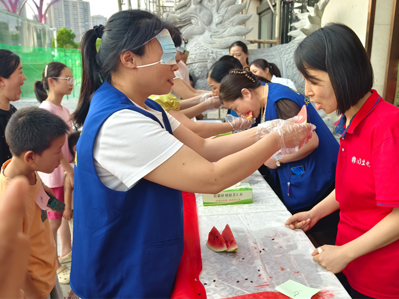 7月18日18:00,霍邱商廈在門前廣場(chǎng)開(kāi)展“蒙眼吃西瓜”趣味活動(dòng),為顧客帶來(lái)了絲絲清涼和陣陣歡樂(lè)。
