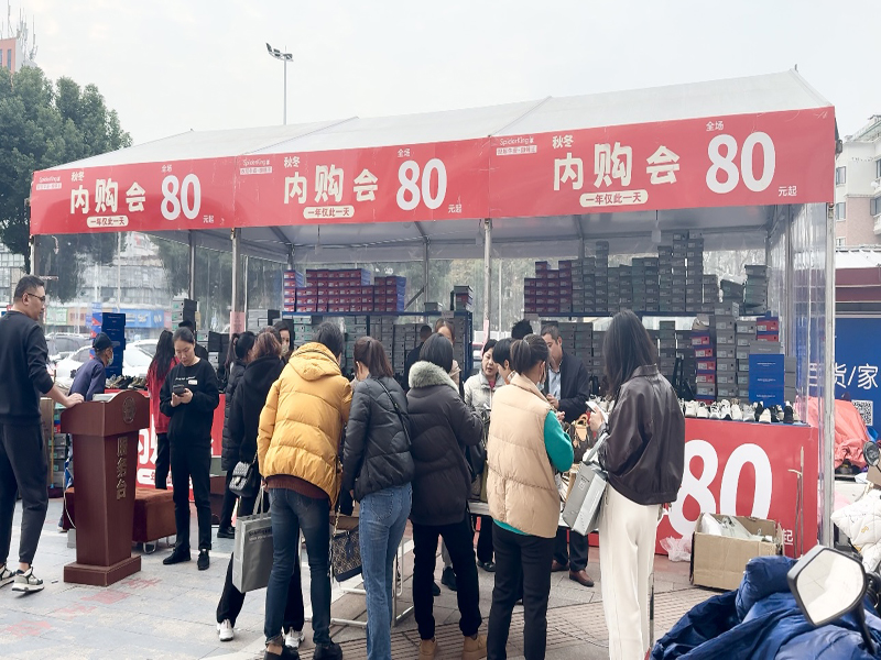 隨著天氣轉(zhuǎn)涼,六安商廈從 11 月中旬開始,經(jīng)過與當(dāng)?shù)刂鞴懿块T的溝通申請,在商廈廣場搭建一組三間促銷棚,男女鞋及箱包等豐富貨源齊聚于此,并通過短視頻、朋友圈以及 VIP 顧客群等多渠道宣傳,吸引了大量顧客的關(guān)注和購買,實(shí)現(xiàn)單日銷售3萬元業(yè)績,充分發(fā)揮了廣場效應(yīng)。