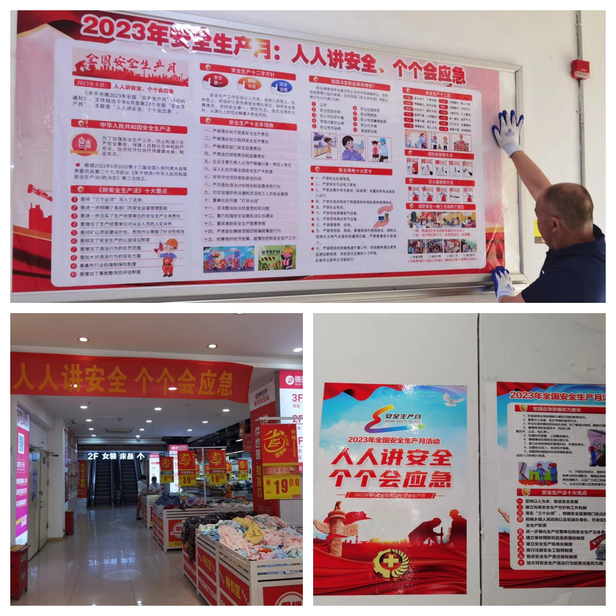 目前,商廈已在各樓層安全通道、宣傳欄張貼安全生產(chǎn)宣傳畫,一樓南大門內(nèi)場懸掛主題宣傳條幅,并通過致信及微信工作群、商戶微信群進(jìn)行安全生產(chǎn)及安全知識普及,營造安全生產(chǎn)立體宣傳及教育氛圍。