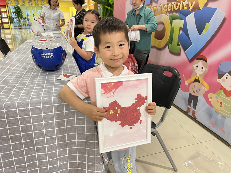 活動伊始,主持人先介紹了國慶節(jié)的由來,并設置了有獎問答,現(xiàn)場的小朋友們都積極參與搶答。接著就到了今天的重頭戲——“貼紐扣”環(huán)節(jié),小朋友們在家長的幫助下開始制作精美的祖國地圖,用一顆一顆的紐扣慢慢描繪出祖國的宏偉藍圖。